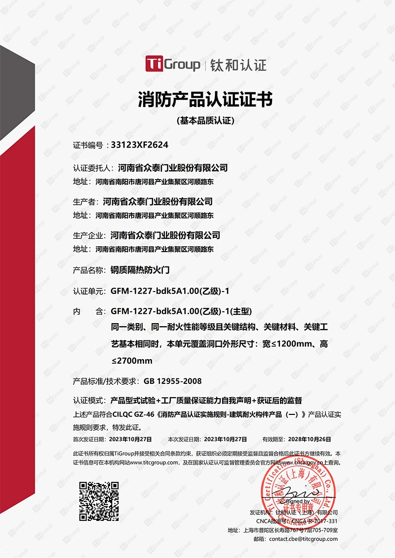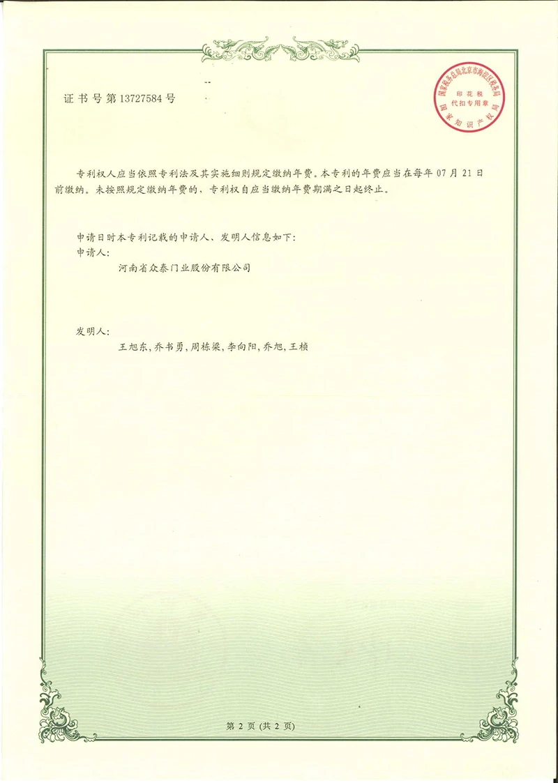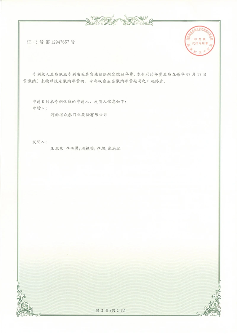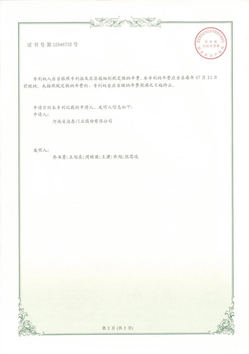 河南省众泰门业股份有限公司位于南阳市唐河县产业集聚区,公司创建于2009年10月。公司现占地2万余平方米,现有生产车间1.5万余平方米。公司是一家集各种级别钢质防火门、钢木质防火门、其它材质隔热防火门、钢质防火窗、铝质防火窗、防火卷帘门及铜门研发、制造、销售、安装服务于一体生产企业。公司荣获***企业、科技型中小企业、市工程研究中心、河南省创新型中小企业等,公司现有员工48余人,技术人员6人。