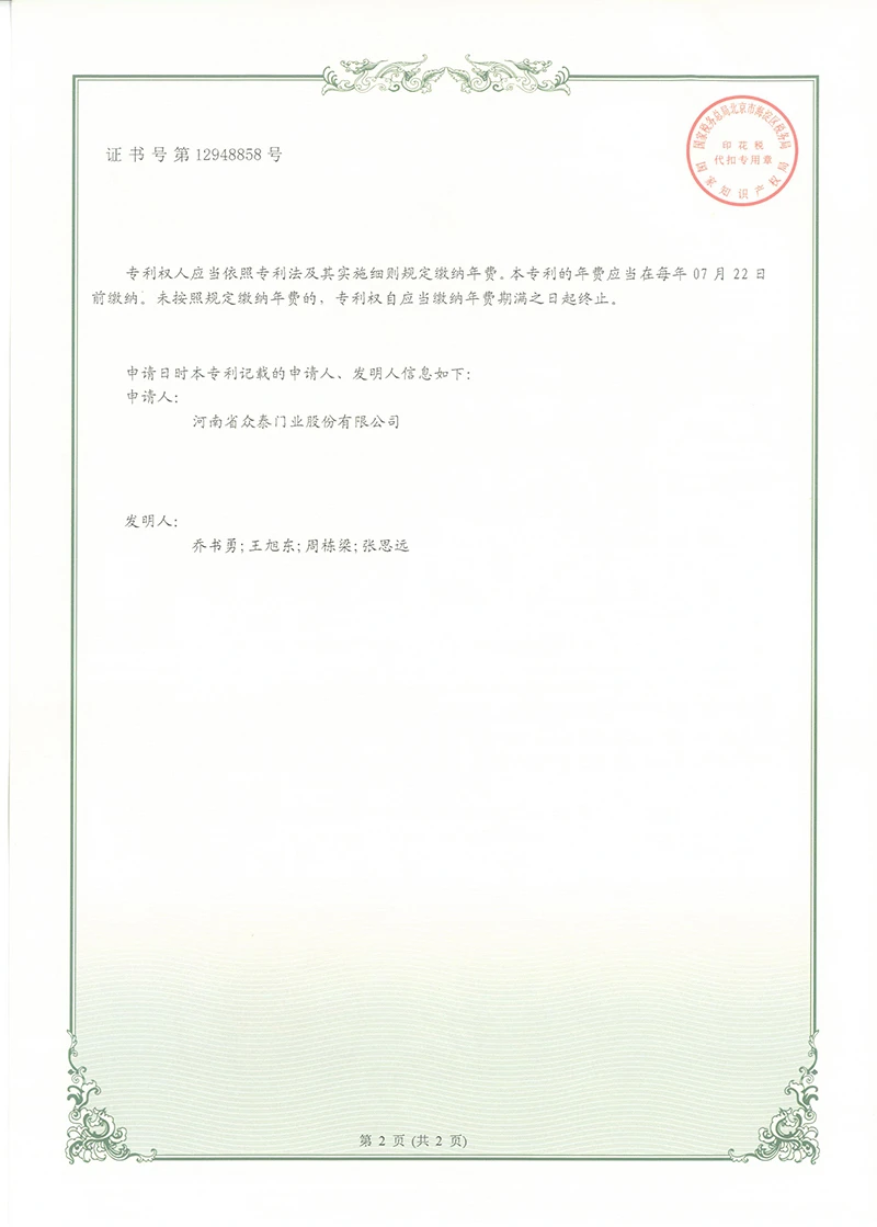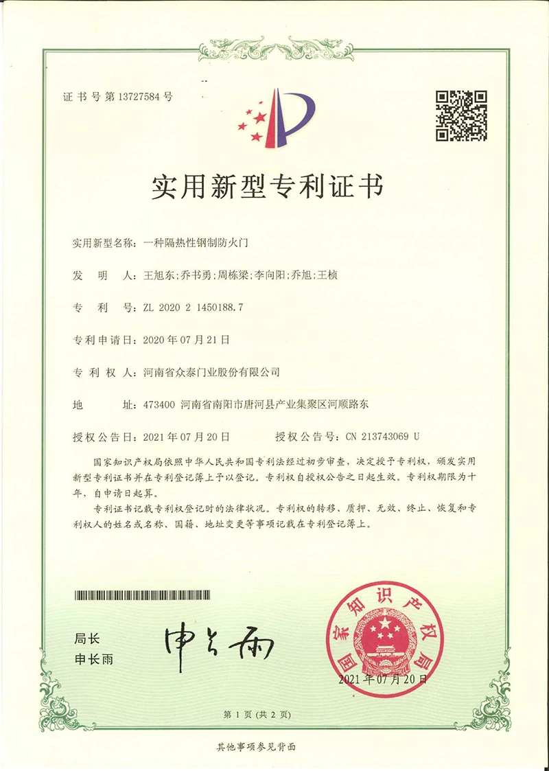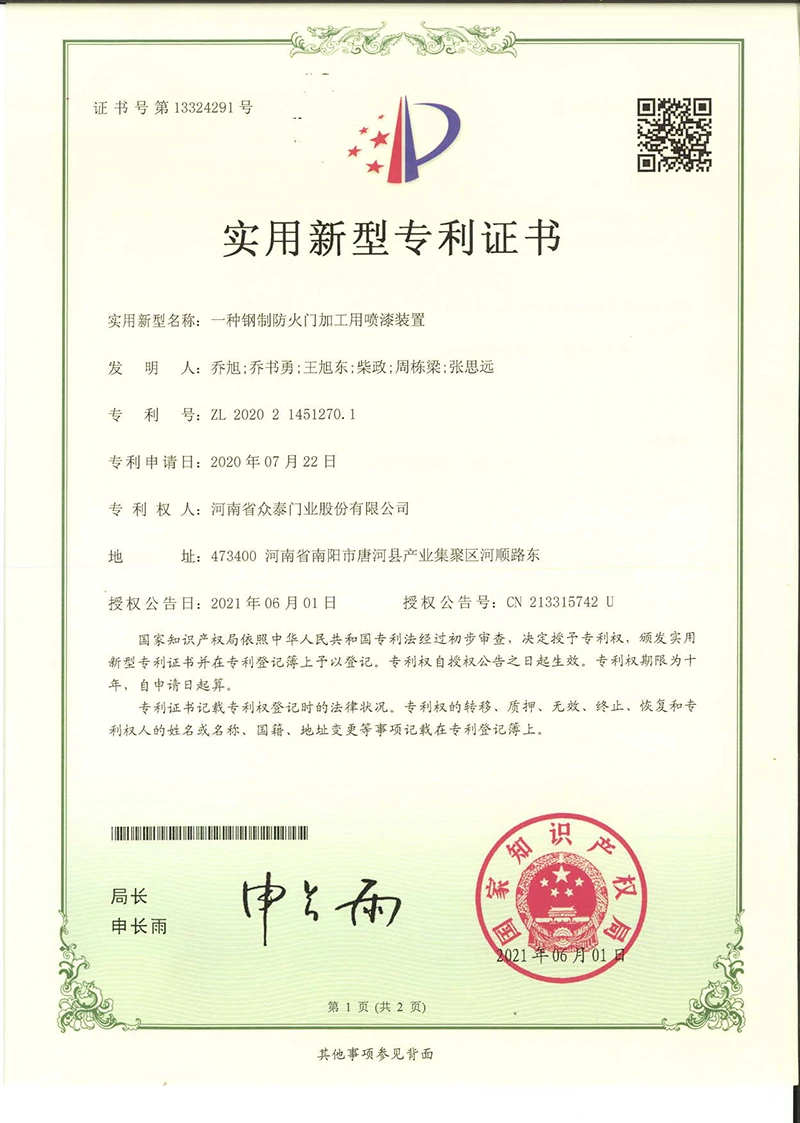 河南省众泰门业股份有限公司位于南阳市唐河县产业集聚区,公司创建于2009年10月。公司现占地2万余平方米,现有生产车间1.5万余平方米。公司是一家集各种级别钢质防火门、钢木质防火门、其它材质隔热防火门、钢质防火窗、铝质防火窗、防火卷帘门及铜门研发、制造、销售、安装服务于一体生产企业。公司荣获***企业、科技型中小企业、市工程研究中心、河南省创新型中小企业等,公司现有员工48余人,技术人员6人。